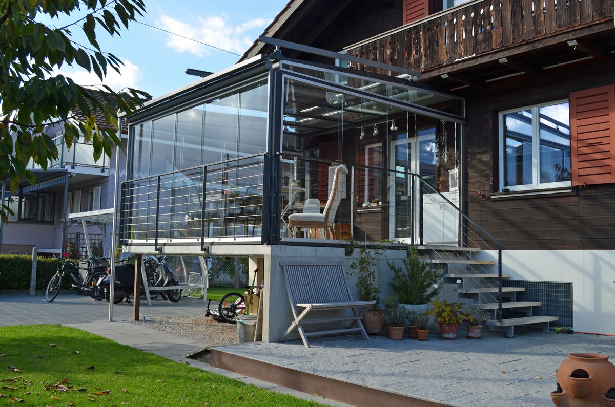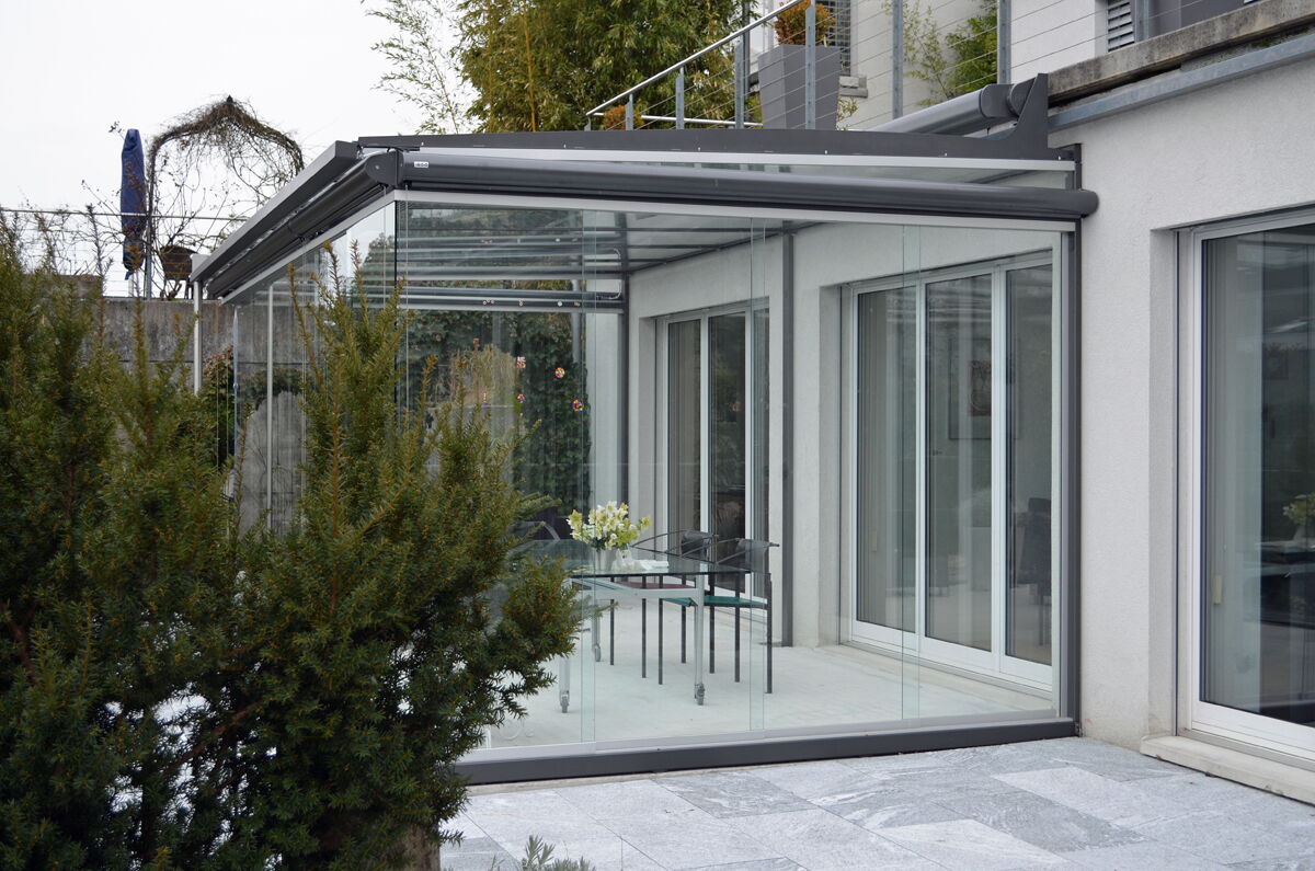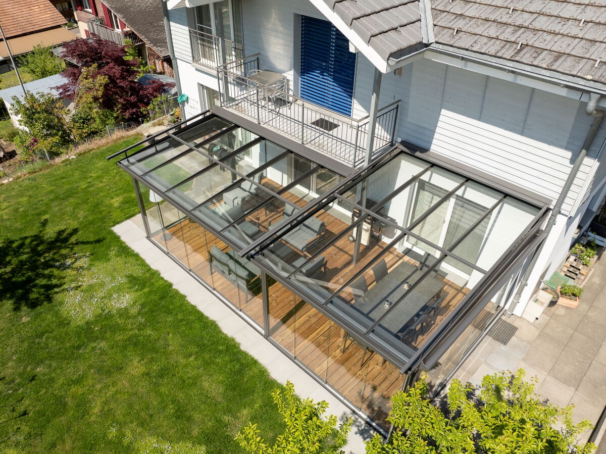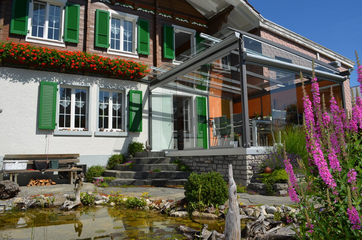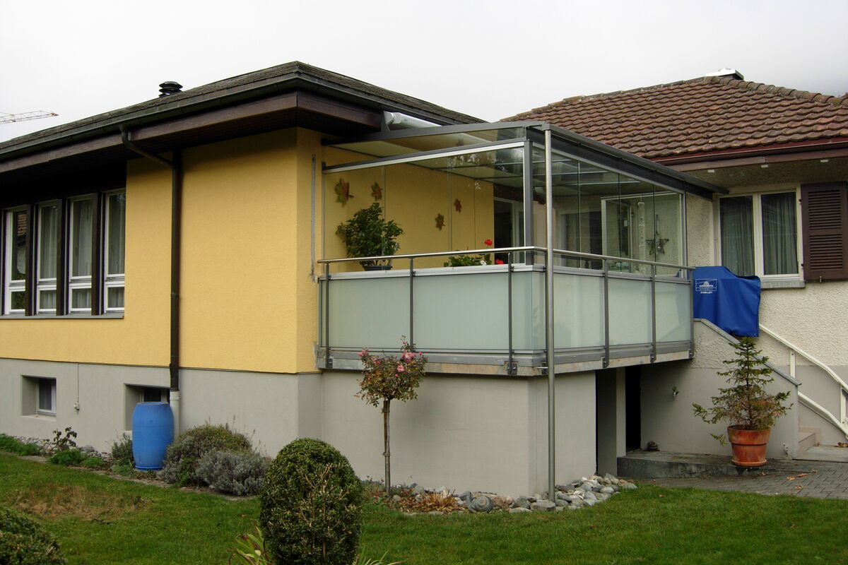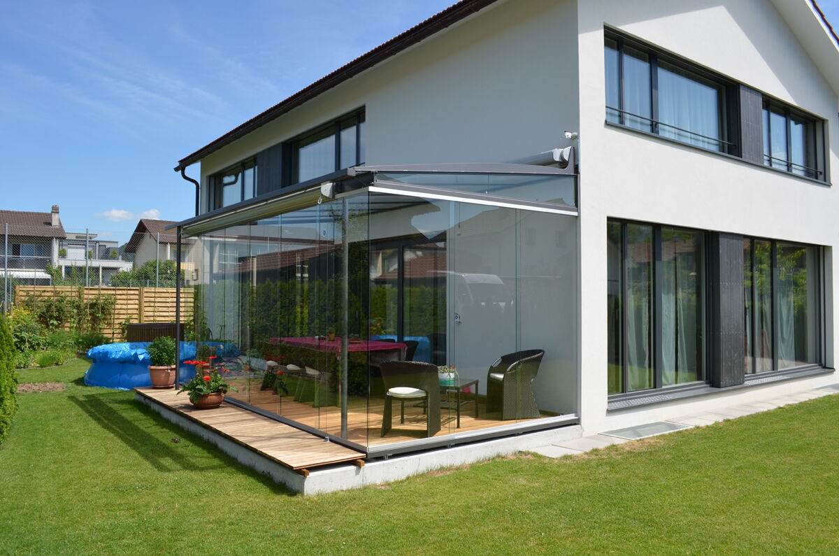 Die vertikalen Verglasungen werden profillos, in Ganzglasoptik hergestellt. Dies ermöglicht einen ungestörten Blick nach aussen und lässt Sie die Aussicht ohne Einschränkung geniessen.