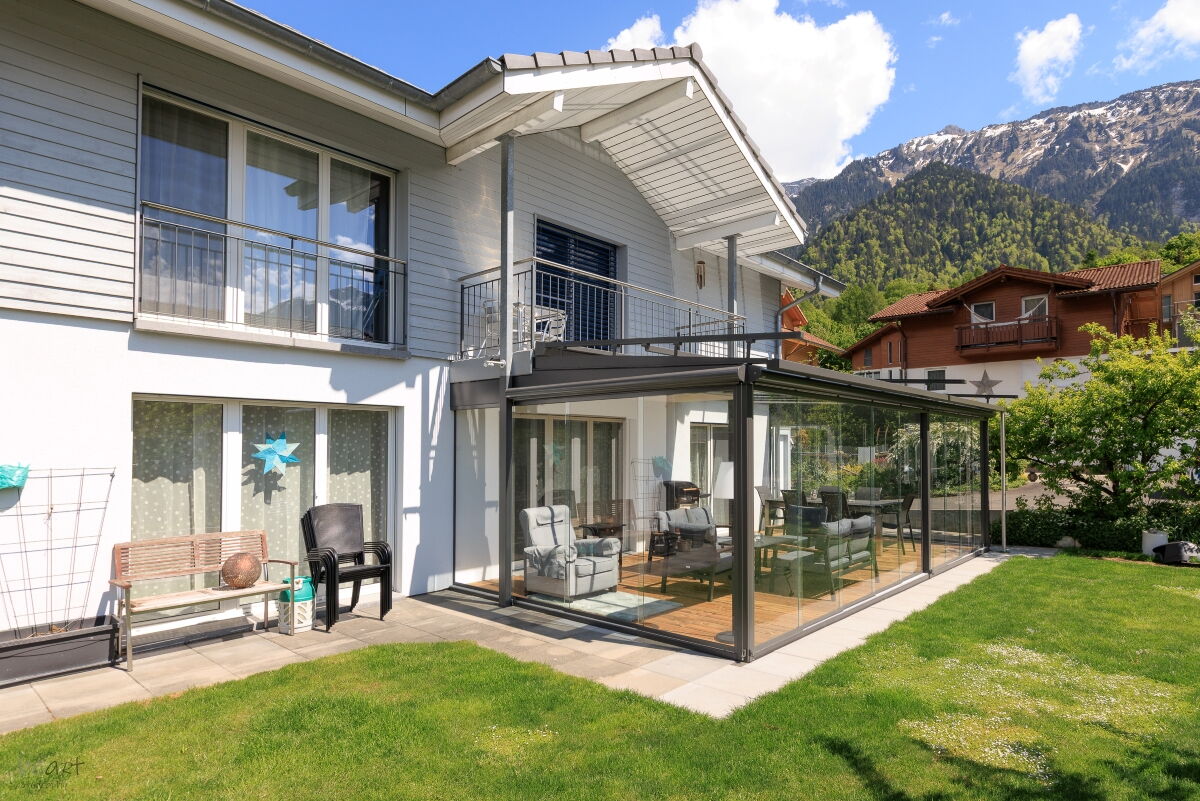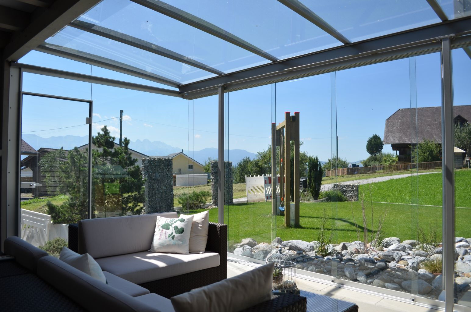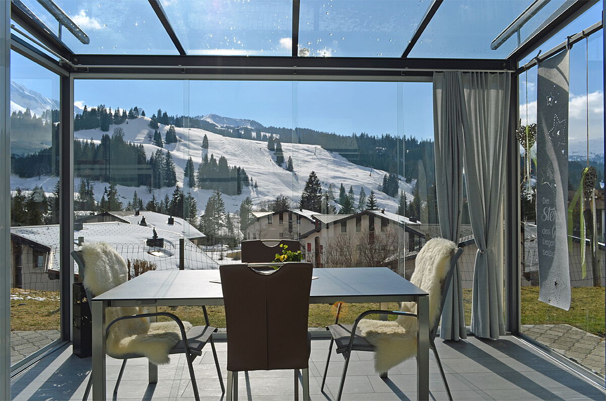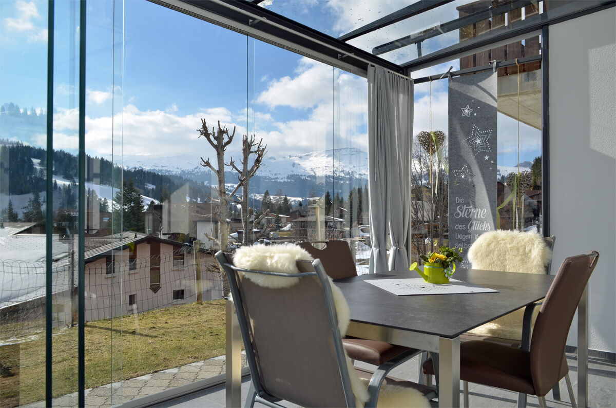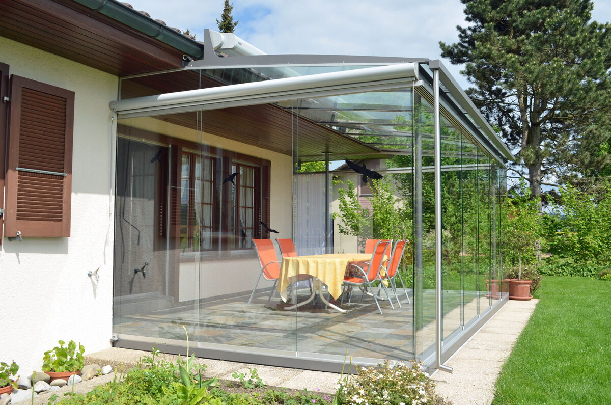 Die vertikalen Verglasungen werden profillos, in Ganzglasoptik hergestellt. Dies ermöglicht einen ungestörten Blick nach aussen und lässt Sie die Aussicht ohne Einschränkung geniessen.